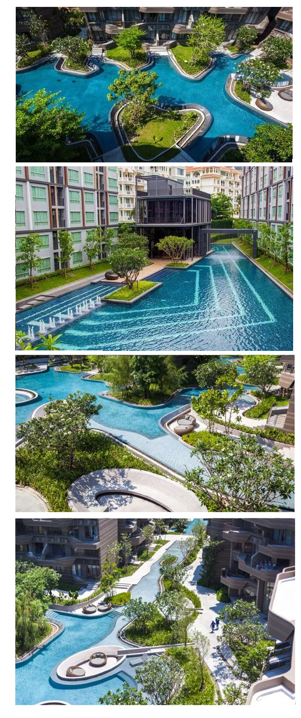| 另外一種視覺享受,它是水中的種植池,有樹有草有石,一圈外圍隨型而置的燈光,好似珍珠散落。 |