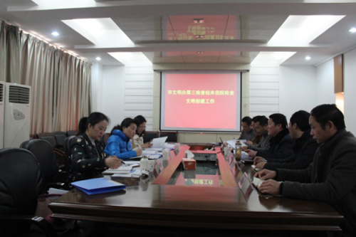 2月13日下午,市文明辦檢查組第三小組在領(lǐng)隊、市文明辦辦公室主任王曉群帶領(lǐng)下,對我院申報創(chuàng)建第十一屆市文明單位進(jìn)行檢查驗收。檢查組首先聽取了賀玉龍院長代表我院所作的創(chuàng)建工作匯報,隨后按照《第十一屆滁州市文明單位測評細(xì)則》對我院申報創(chuàng)建材料進(jìn)行了認(rèn)真的查驗,并對我院辦公及周圍環(huán)境進(jìn)行了實地查看。副院長丁文軍、王士才、黃明華、袁家金和院文明創(chuàng)建領(lǐng)導(dǎo)小組辦公室主任季阿祥參加了匯報會。