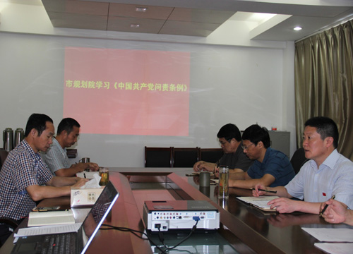 2016年9月1日上午,市規(guī)劃設(shè)計(jì)院召開(kāi)全院干部大會(huì),組織學(xué)習(xí)《中國(guó)共產(chǎn)黨問(wèn)責(zé)條例》。會(huì)議由院黨支部書(shū)記、院長(zhǎng)賀玉龍同志主持,院班子及全體室(隊(duì))干部參加了會(huì)議。