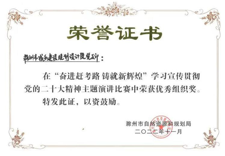 2022.11學(xué)習(xí)宣傳貫徹黨的二十大精神主題演講獲優(yōu)秀組織獎
